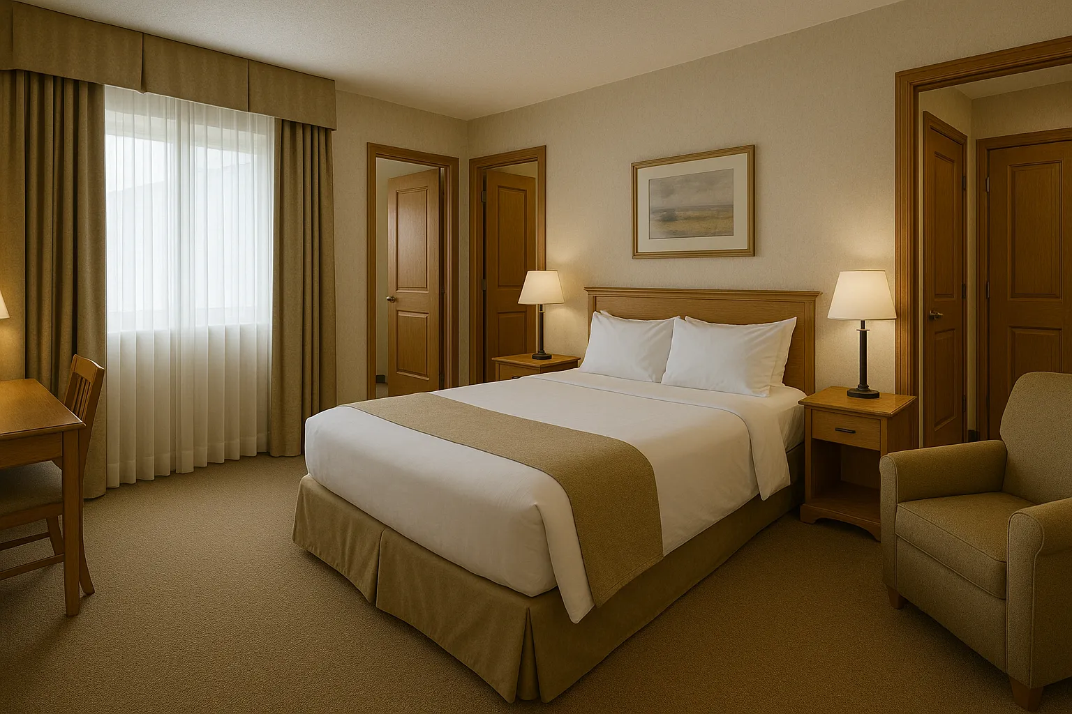 Otel projelerinde misafir memnuniyetinin en önemli kriteri, konforlu ve sessiz bir konaklama deneyimidir. Koridor gürültüsünü etkin bir şekilde bloke eden yüksek desibel (dB) değerlerine sahip **akustik laminat otel kapıları**, misafirlerinize huzurlu bir ortam sunarak işletmenizin itibarını artırır.